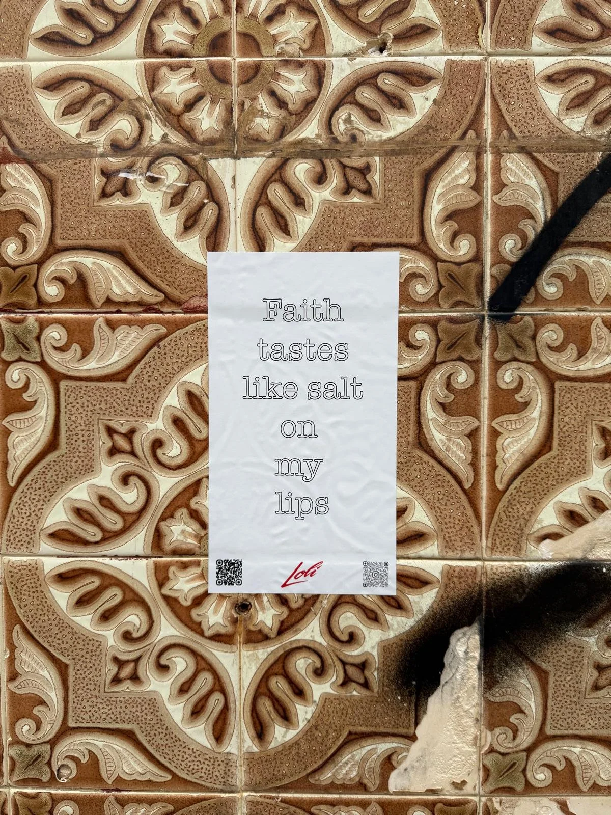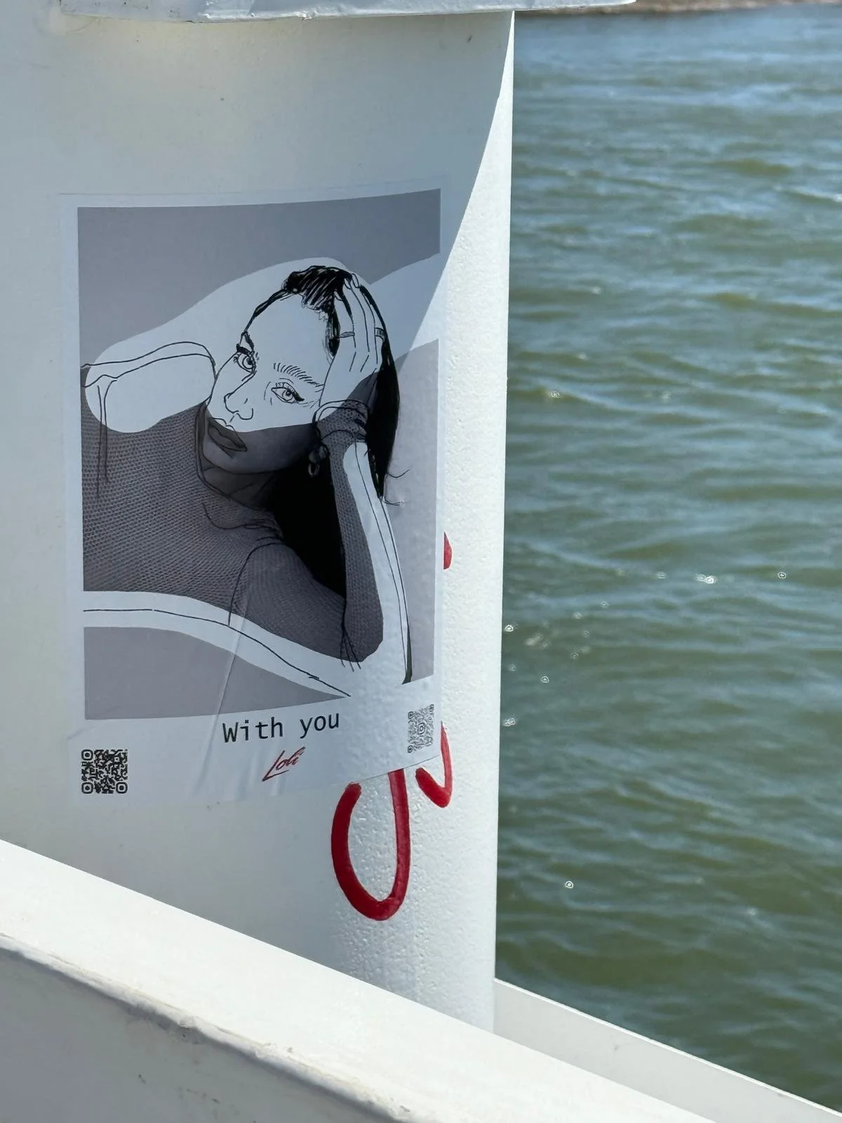The drawings and phrases became stickers almost instinctively. I was drawn to their scale and fragility. Stickers are not monumental; they are intimate. They can be held, placed, moved, or shared. They exist lightly in space, the way thoughts do.
